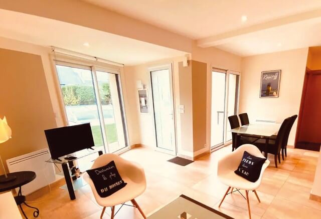 Avec de larges ouvertures donnant sur le salon et l’espace commun, nous leur proposons des baies vitrées, type d’ouverture qui convient le mieux à ce genre d’espace, le but étant de faire entrer le plus de luminosité possible. Dans la cuisine, Eric et Lucie optent pour des fenêtres à ouvertures coulissantes pour gagner de la place lors de l’ouverture. Idem pour les chambres. Dans la deuxième maison, plus petite que la première, ils souhaitent créer le plus d’ouvertures possible allant jusqu’à choisir des portes vitrées qui donnent sur l’extérieur.