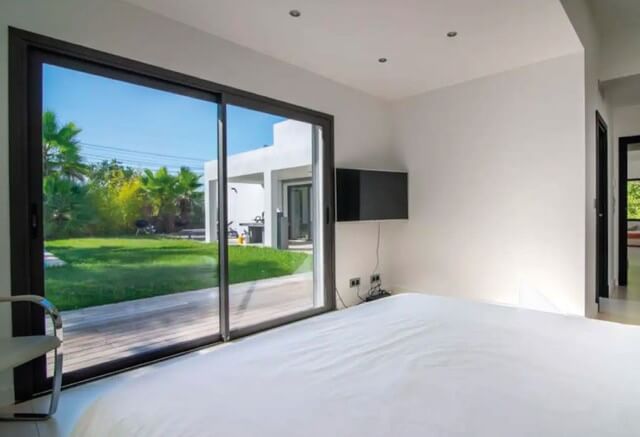 Pour la grande pièce à vivre, nous les avons orientés vers des ouvertures de types baies vitrées pour conserver toute la lumière possible et donner une impression d’immensité de la pièce. Idem pour la cuisine et la chambre principale où ils ont choisi un modèle à portes coulissantes pour plus de facilité. La salle de bain possède également une vaste ouverture, facilement sublimée par une grande baie vitrée.